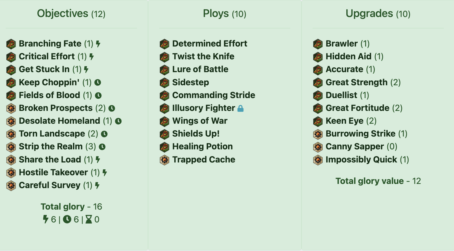 Award for “Good. Not at all exciting, but good.”: Riptide harpoon. Plus one dice when charging is great. In the pairing I used the most, it also got you to a solid three dice attack to improve the chances of scoring Critical Effort and Branching Fate. Happy to have it. This is the sort of ability that would have been a single line on a fighter card.