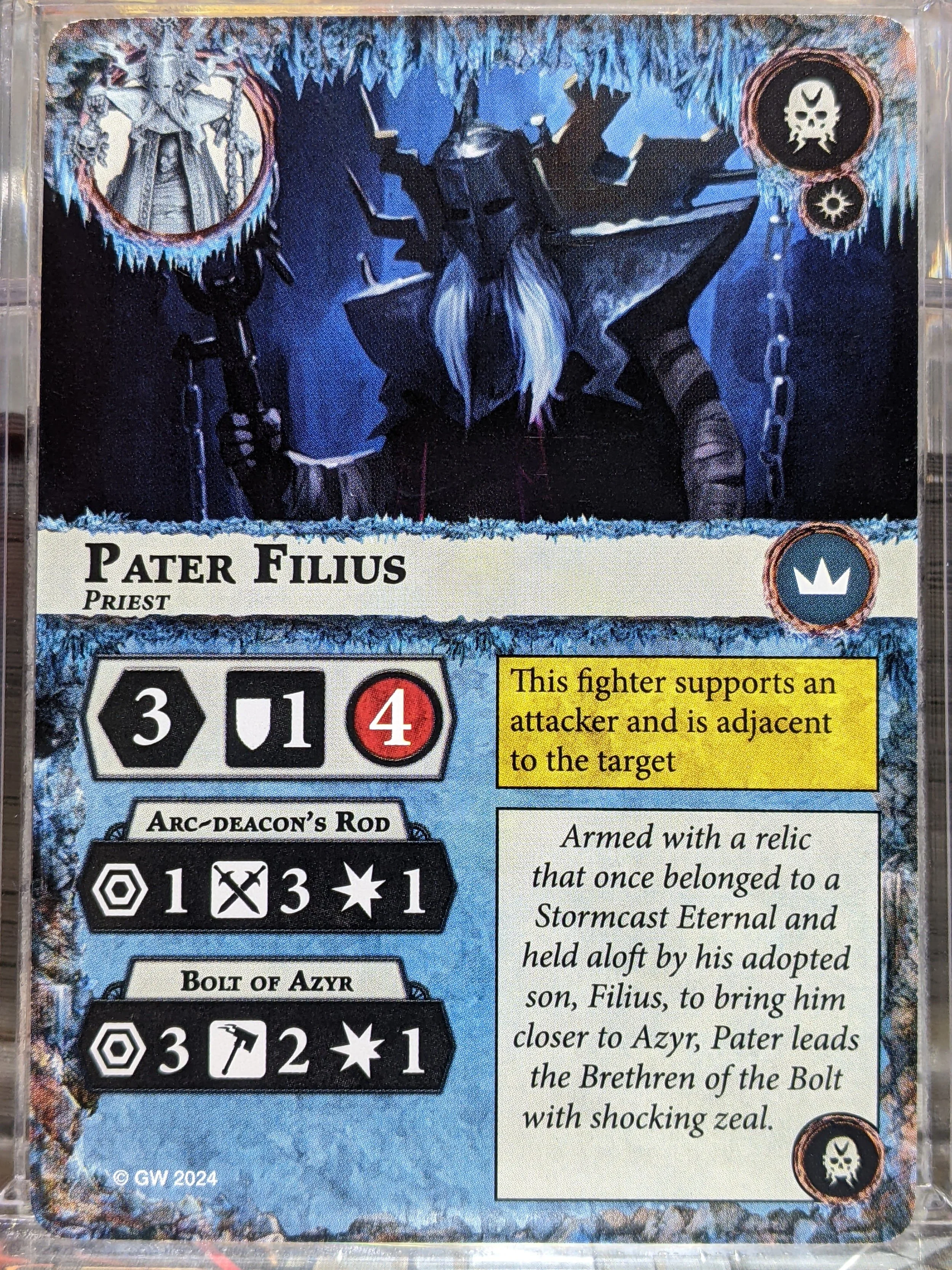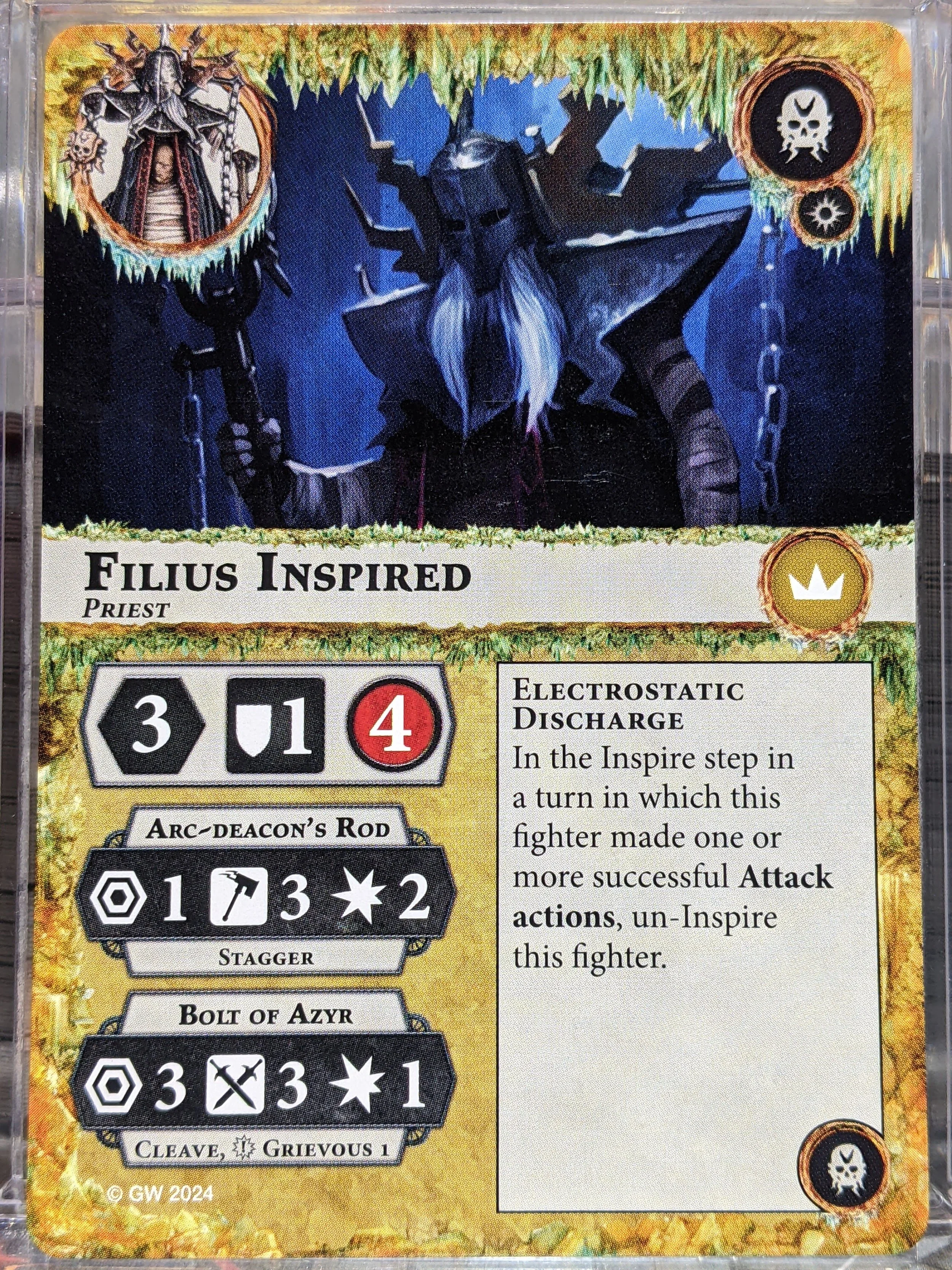 D: We're gonna start inspired, since that's where they begin. Base stats are *fine*. Attack actions are pretty hot, especially with the potential to increase range. That Bolt of Azyr in particular, though if you land it, it may be a little tricky to get Filius re-inspired, since he was probably lobbing at range. Oh! And he's a priest!