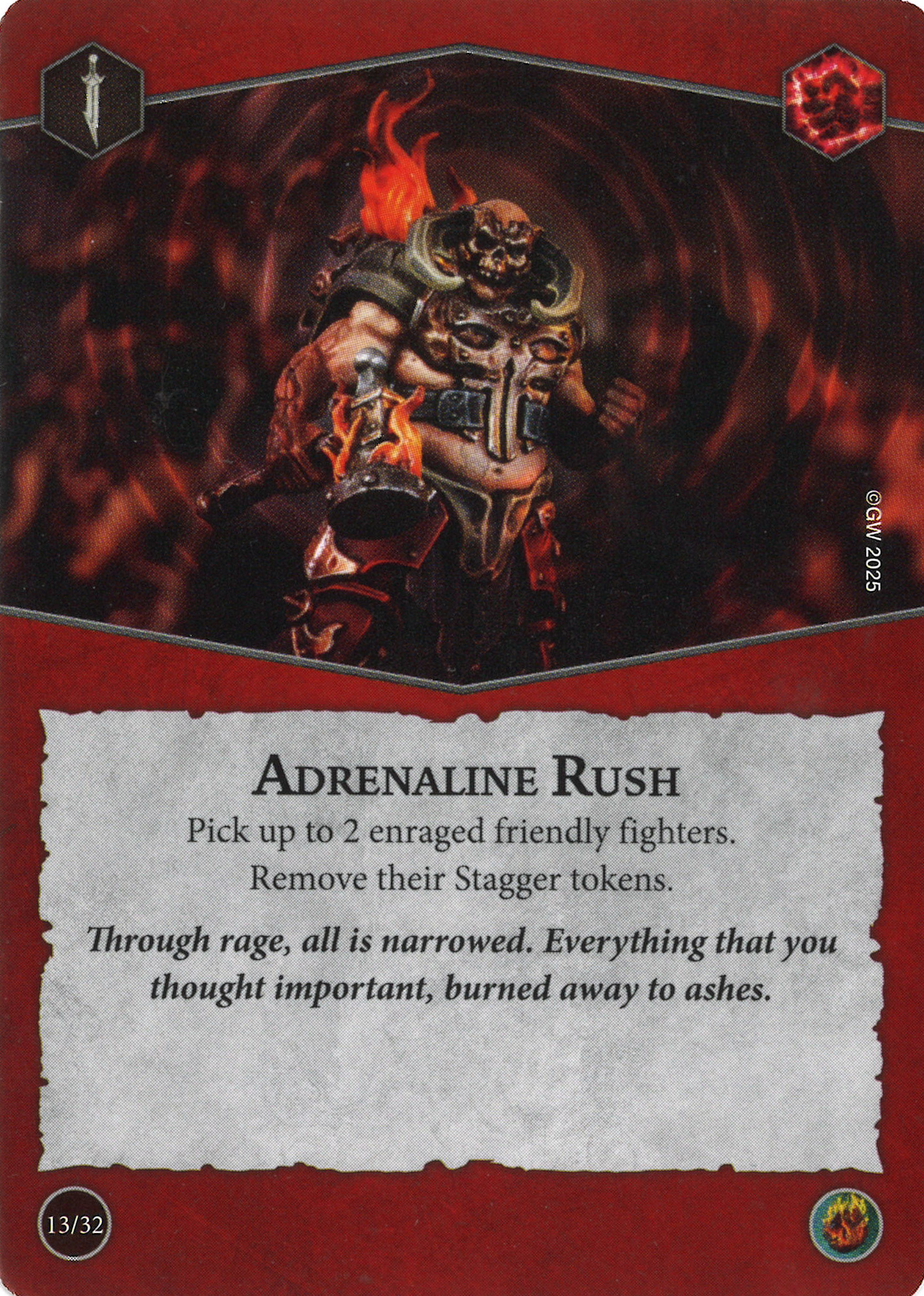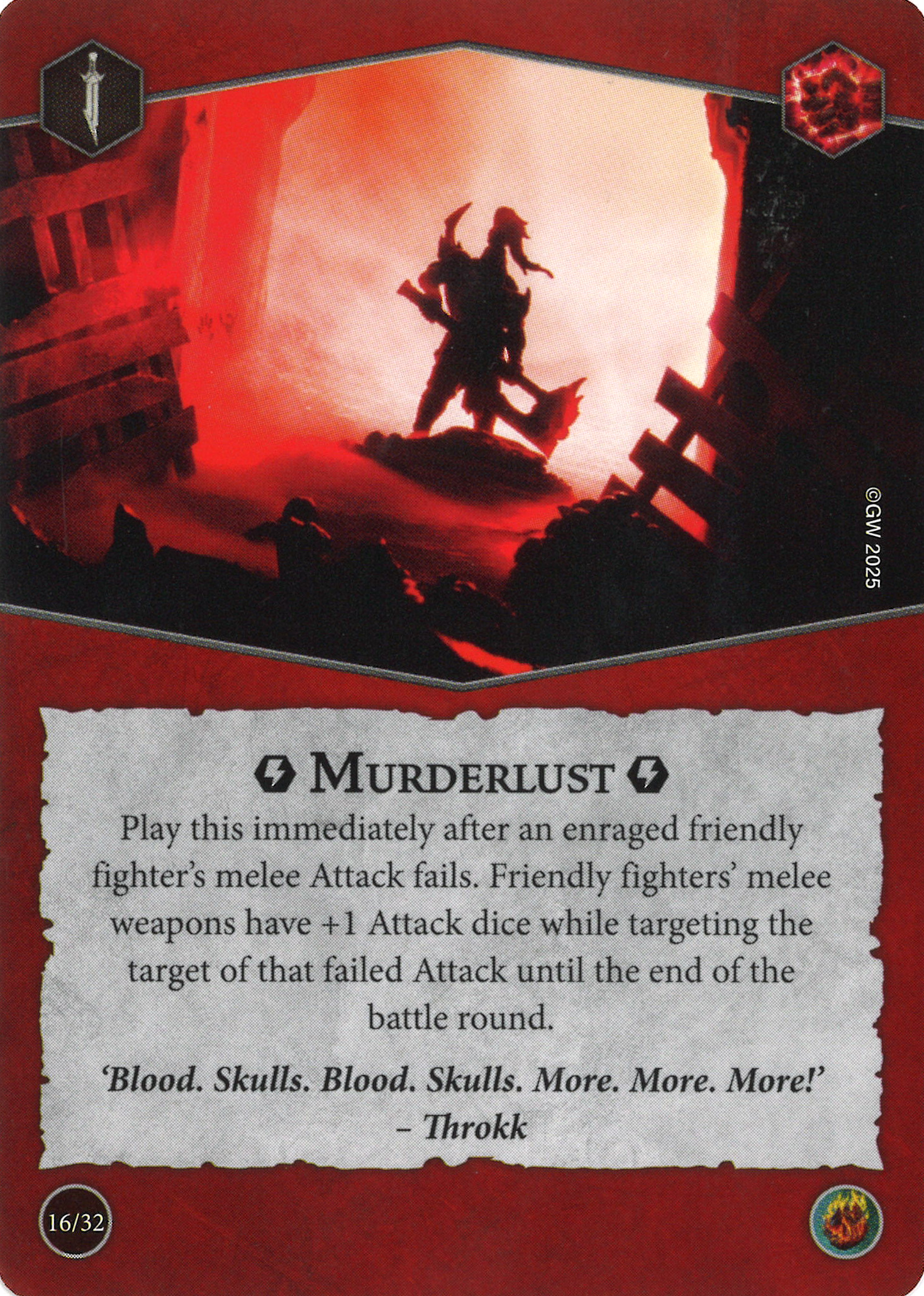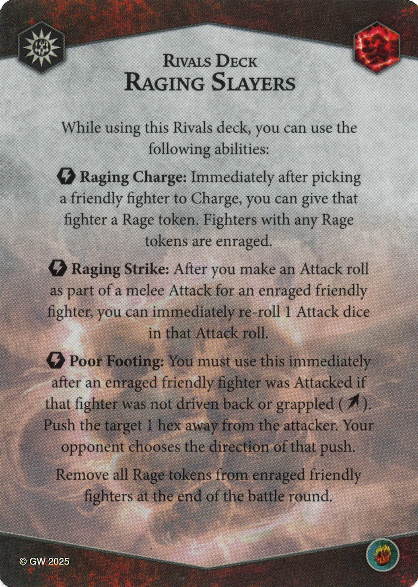 - While enraged, that fighter's attacks gain 1 re-roll.