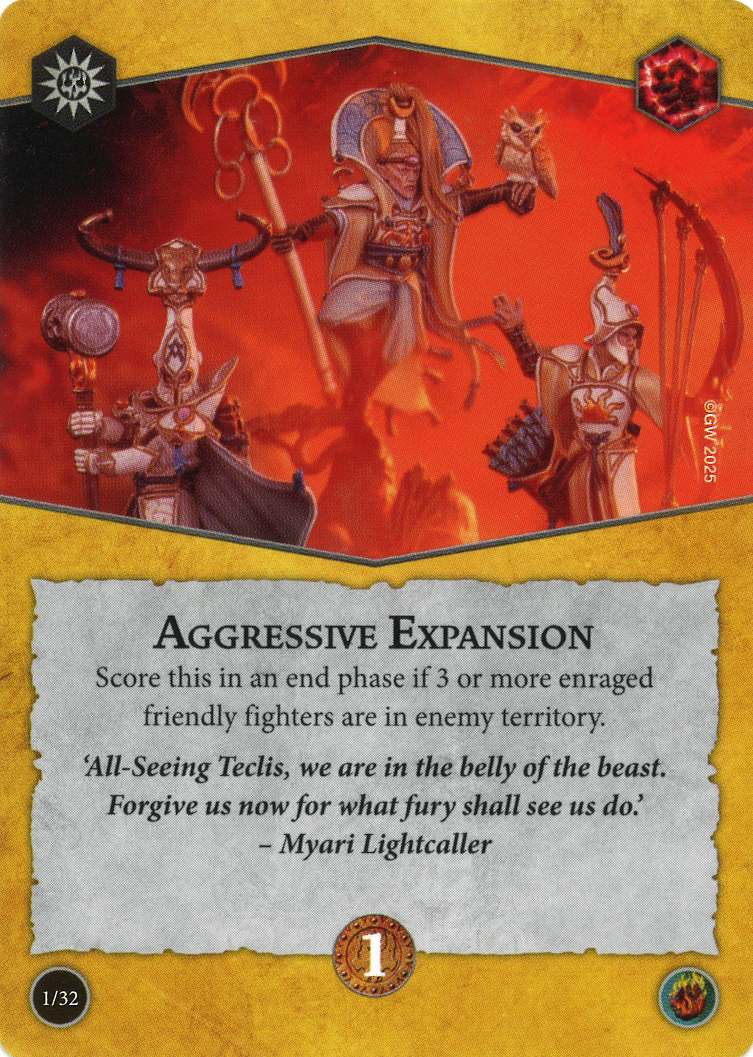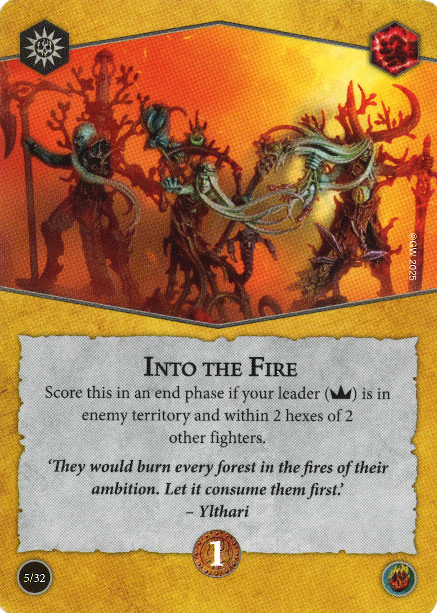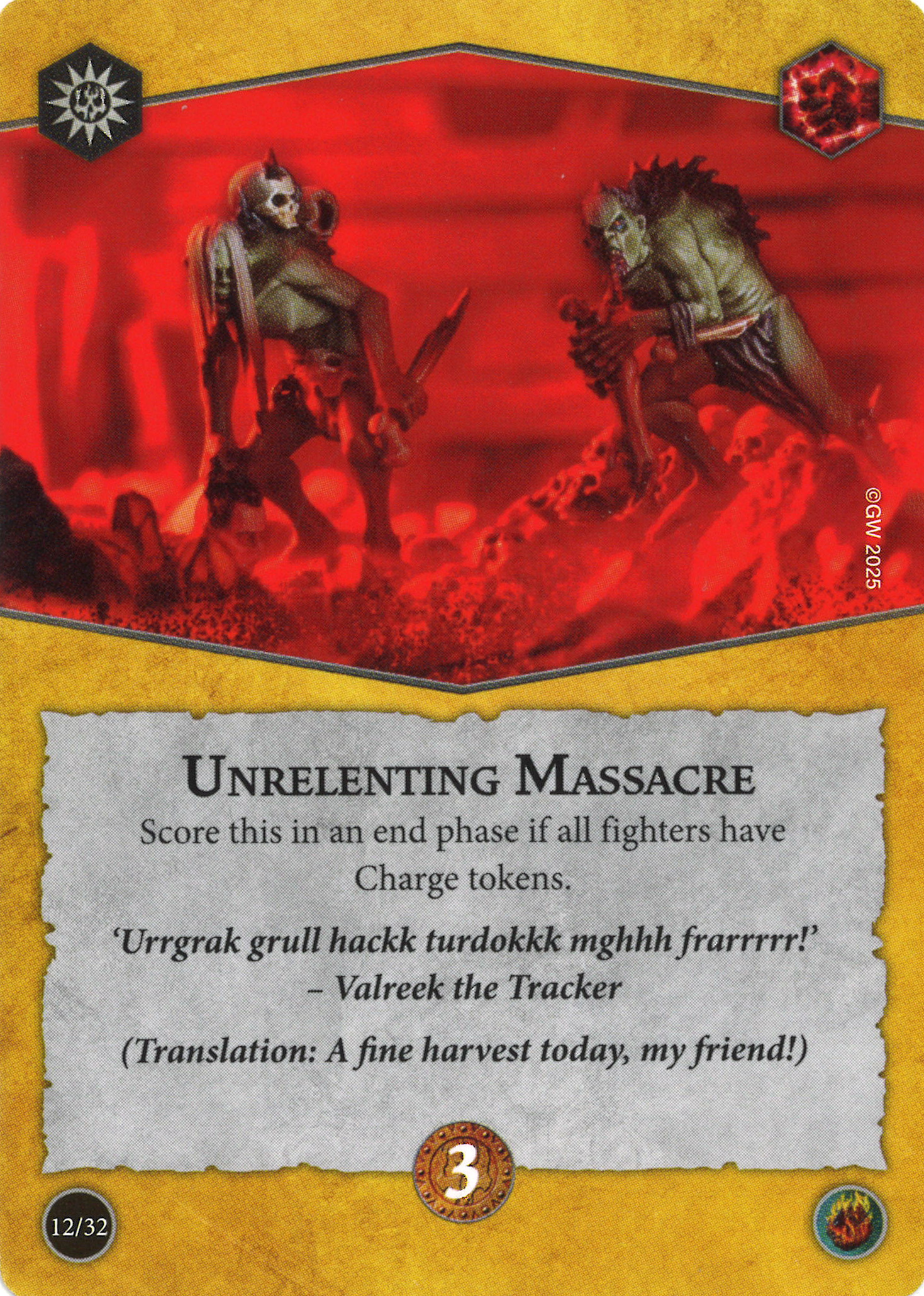 D: This is an objective that says "hey, I'm more useful in high fighter count warbands". i.e. those that are more likely to have enough fighters to score this in R2 and R3 after casualties. But those high fighter count warbands are also often pretty killable, which makes it more challenging to keep enraged fighters alive.