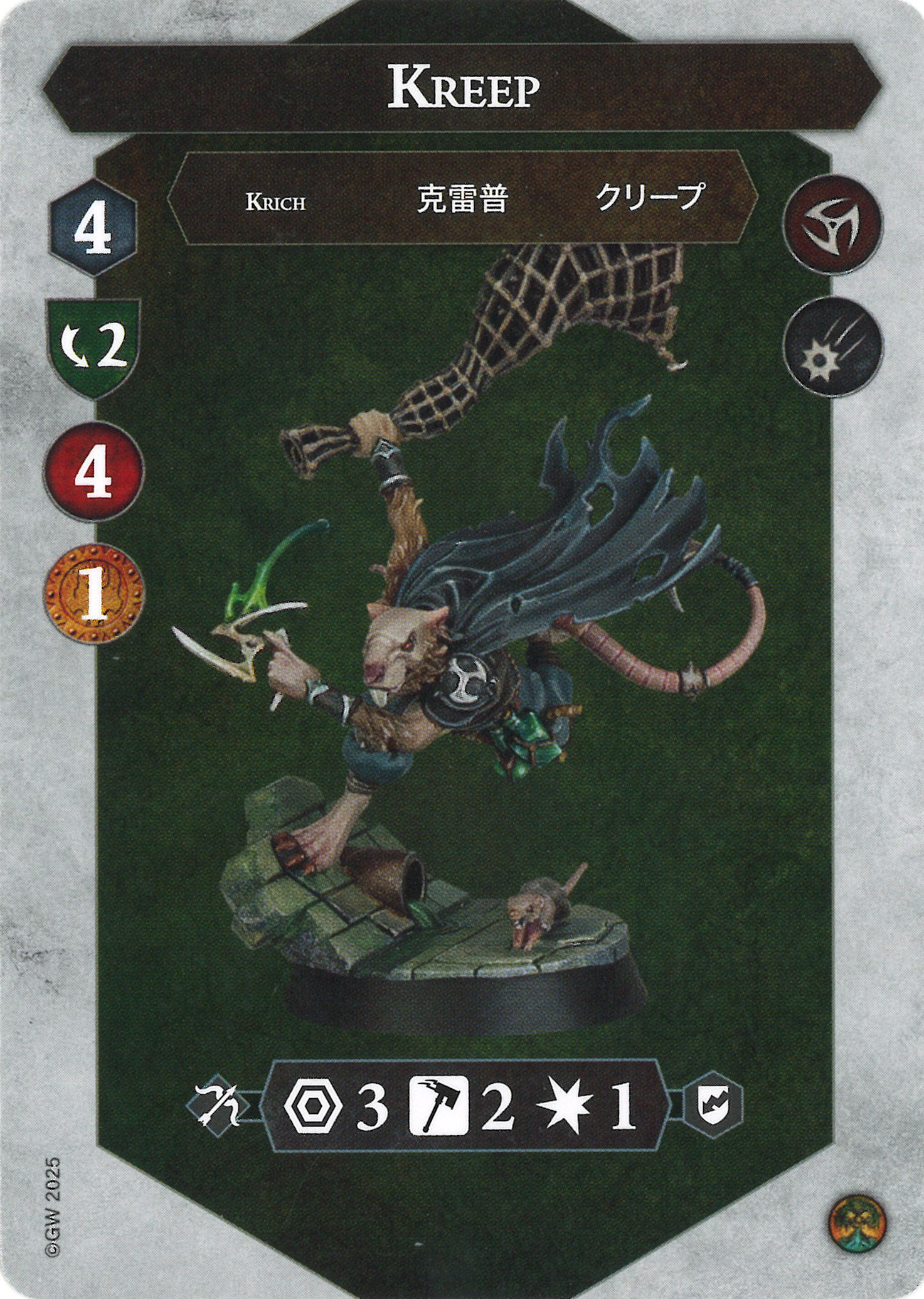 Z: Worth noting again that Kreep can't use the Spiketraps and Snares ability since he doesn't have a melee attack. This unfortunately makes him less appealing as a fighter than he previously was. 2 dodge and 4 health might make him an ideal candidate for an early charge onto a token into a beefy enemy leader to try to get a stagger out.