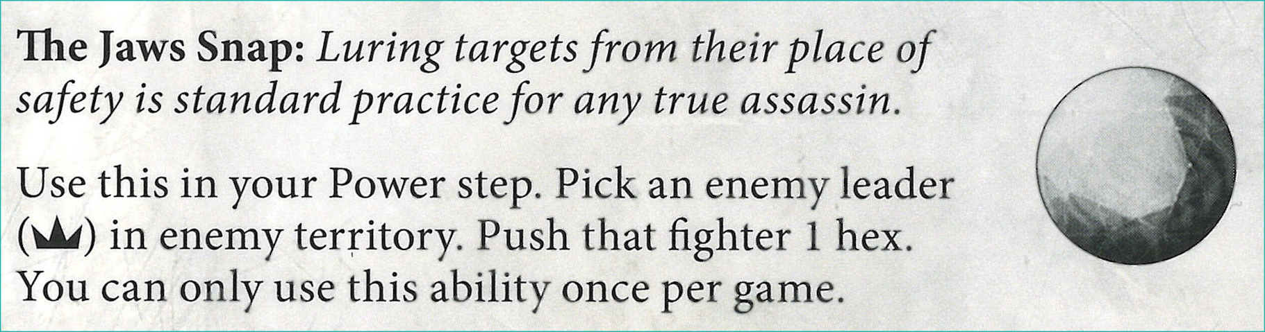 Z: I don't want to diminish pushing an enemy fighter, but the previous version of this was 2 hexes and could be played before your activation. That would probably be too good now, so this will have to suffice (which I think it does).