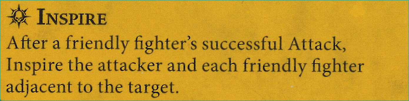 Z: No more crit needed! Pretty simple, just need to hit. Note that this is after the entire attack, so you can drive a fighter back next to another fighter to inspire them.