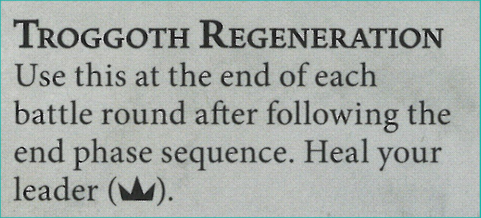 Z: This certainly complicates going after the big guy. Between this and other heals you'll likely want to bring, he'll be pretty awkward to try to take down for a lot of warbands.