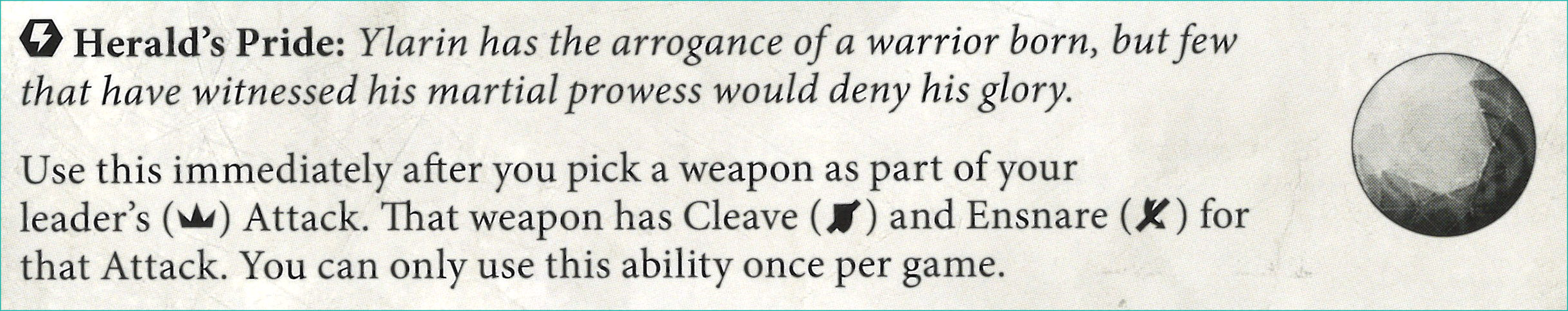 S: Speaking of abilities that are bland and nothing special... it's fine and will be of use. A bit surprised to see it locked to Ylarin.