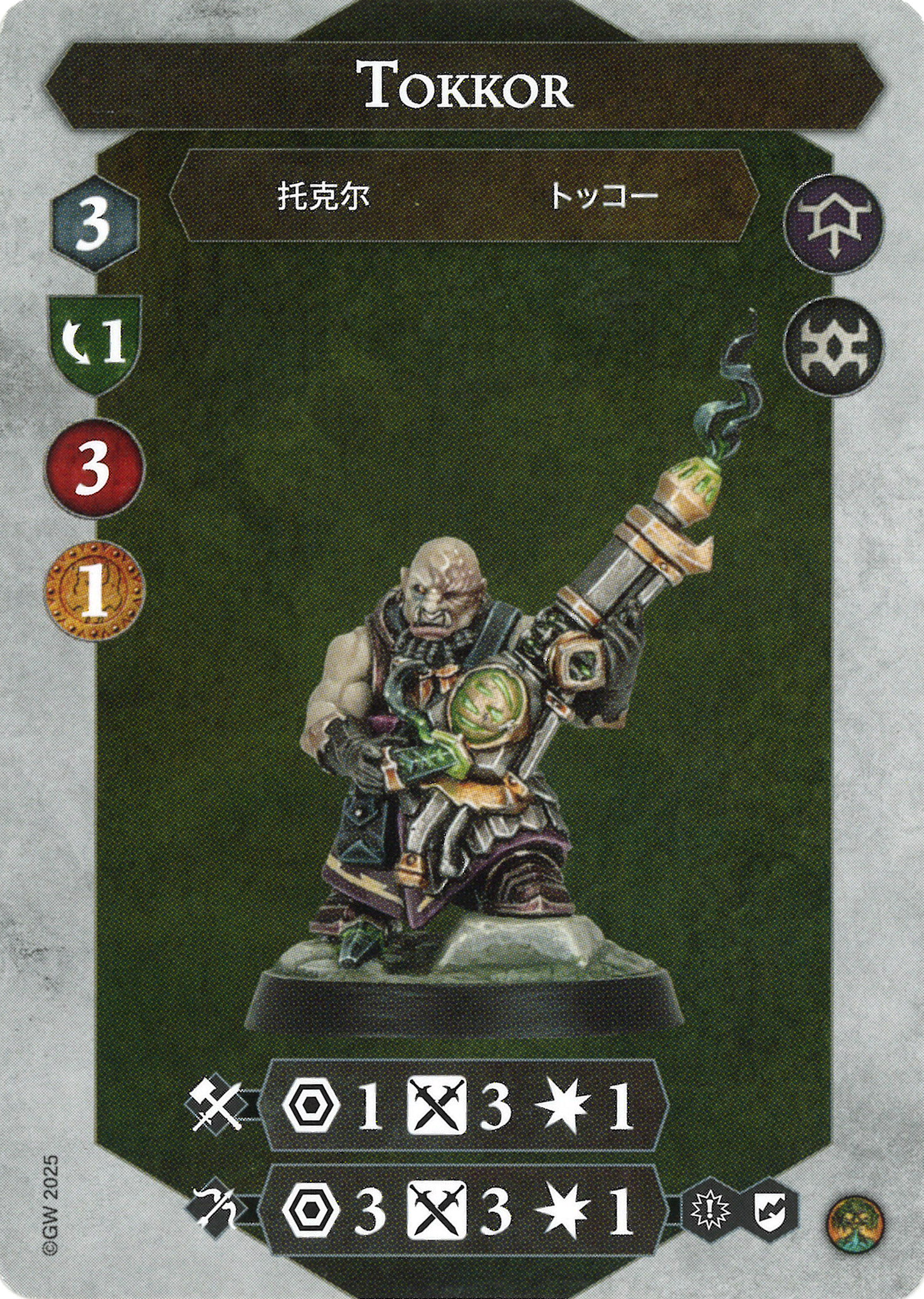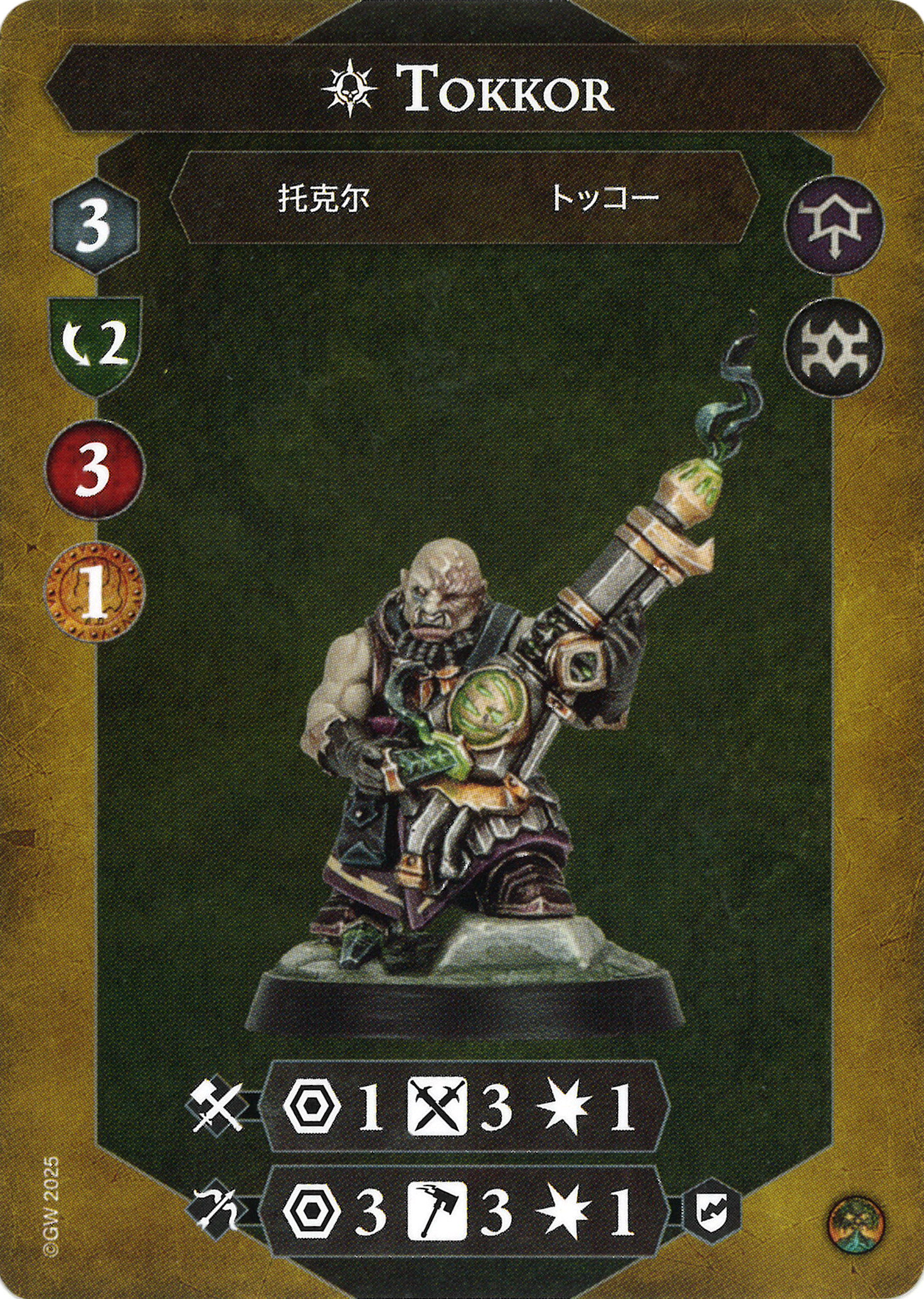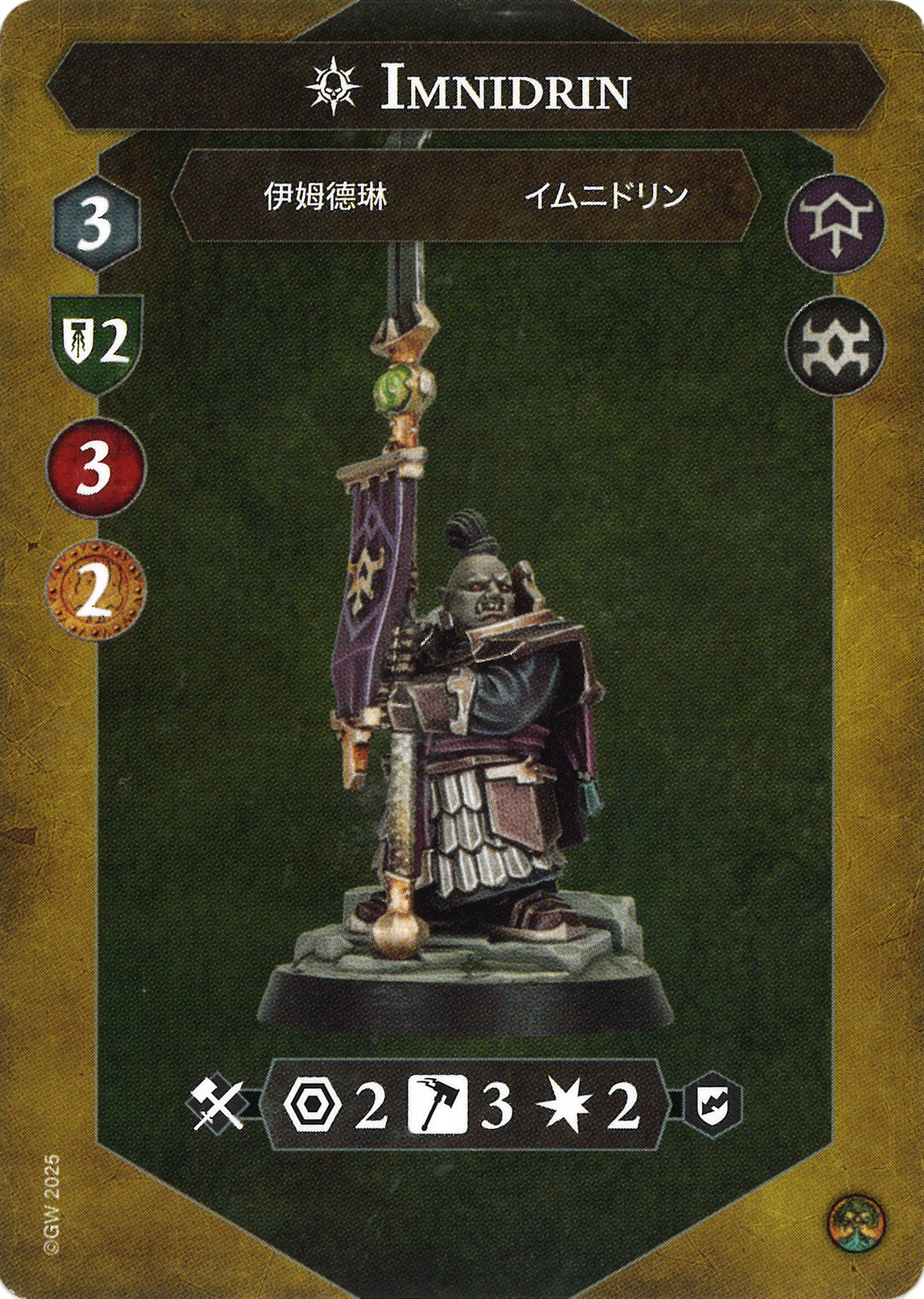 D: Is it a banner? Is it a spear? Doesn't matter. Perfectly serviceable attack profile, and I think range 2+ is very welcome in a warband that is incentivized to scramble on to features.